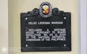 NHCP Photo Collection, 2025 ▲ ▼ Location: Ortiz Street, Ioilo City, Iloilo Category: Buildings/Structures Type: Ancestral House Status: Heritage House Marker date 15 May 2025 Installed By: National Historical Commission of the Philippines (NHCP) CELSO LEDESMA MANSION DECLARED A HERITAGE HOUSE PURSUANT TO BOARD RESOLUTION NO. 27, S. 2024 OF THE NATIONAL HISTORICAL COMMISSION OF THE PHILIPPINES. Tags: 2025, Buildings/Structures, Celso Ledesma Mansion, Heritage House, Iloilo City, Level II, Region VI