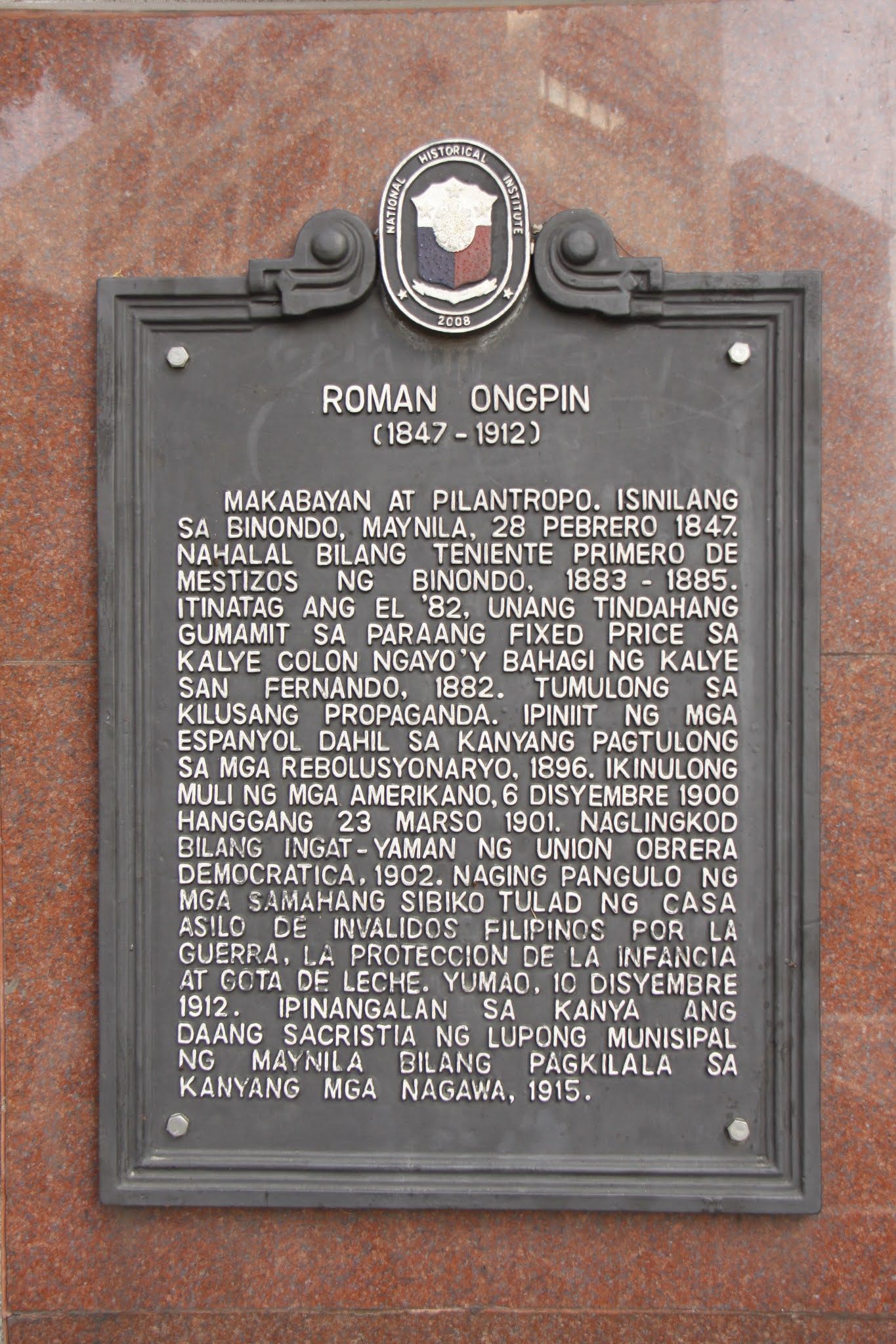 Installed By: National Historical Commission of the Philippines (NHCP)