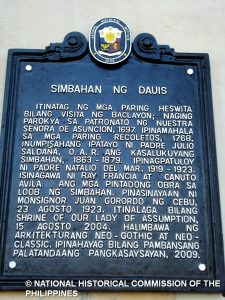 ITINATAG NG MGA PARING HESWITA BILANG VISITA NG BACLAYON; NAGING PAROKYA SA PATRONATO NG NUESTRA SEÑORA DE ASUNCION, 1697. IPINAMAHAL SA MGA PARING RECOLETOS, 1768. INUMPISAHANG IPATAYO NI PADRE JULIO SALDAÑA, O.A.R. ANG KASALUKUYANG SIMBAHAN, 1863–1879. IPINAGPATULOY NI PADRE NATALIO DEL MAR, 1919–1923. ISINAGAWA NI RAY FRANCIA AT CANUTO AVILA ANG MGA PINTADONG OBRA SA LOOB NG SIMBAHAN. PINASINAYAAN NI MONSIGNOR JUAN GORORDO NG CEBU, 23 AGOSTO 1923. ITINALAGA BILANG SHRINE OF OUR LADY OF ASSUMPTION, 15 AGOSTO 2004. HALIMBAWA NG ARKITEKTURANG NEO-GOTHIC AT NEO-CLASSIC. IPINAHAYAG BILANG PAMBANSANG PALATANDAANG PANGKASAYSAYAN, 2009.