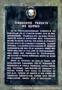 ISA SA PINAKAMATATANDANG SIMBAHAN SA KABIKOLAN. ITO AY ITINATAG NOONG 1578 NG MGA MISYONERONG PRANSISKANO NA SINA PRAYLE PABLO DE JESUS AT BARTOLOME RUIZ. PINAKAULO NG MGA NAUNANG MISYON, ANG BAYAN AY SUMAKOP SA MGA BISITA NG LIGMANAN (LIBMANAN), BANGON (SIRUMA), CALABANGAN (CALABANGA) AT BOMBON HANGGANG SA ANG MGA ITO AY NAGSARILI NOONG MGA TAONG 1586, 1687, AT 1749, AYON SA PAGKAKABANGGIT. MULA NOONG 1902 HANGGANG SA KASALUKUYAN, ANG QUIPAYO AY NAGING PAROKYANG BARYO NG BAYAN NG CALABANGA.